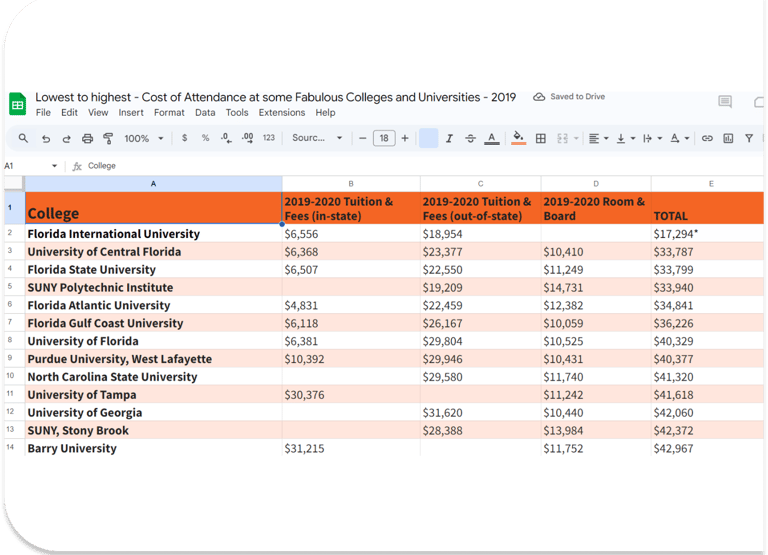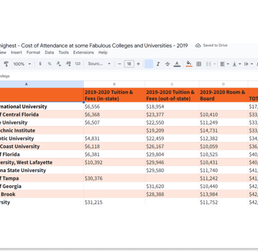 You can also review estimated costs of attendance at key colleges and universities [HERE], listed from lowest to highest.