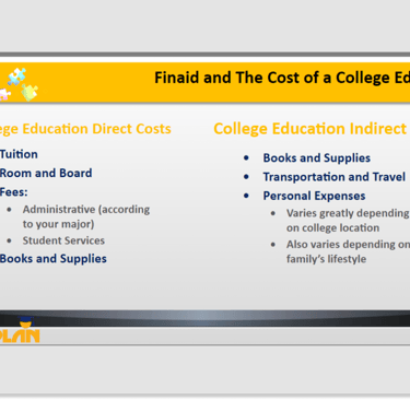 Please review our slide presentation HERE for a detailed overview of Financial Aid, Scholarships, and the Cost of Attendance. The presentation explains key concepts and steps to help you and your family plan effectively for college expenses.