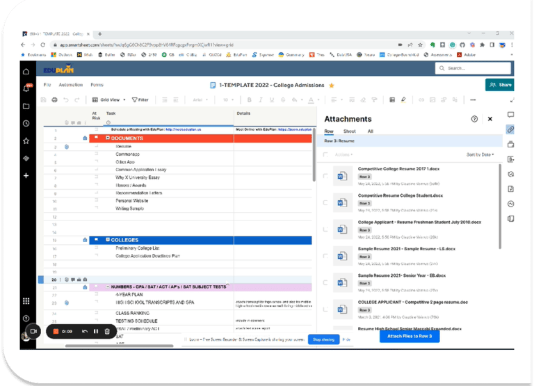 Once you finish your resume, upload the MS Word file onto your Smartsheet.